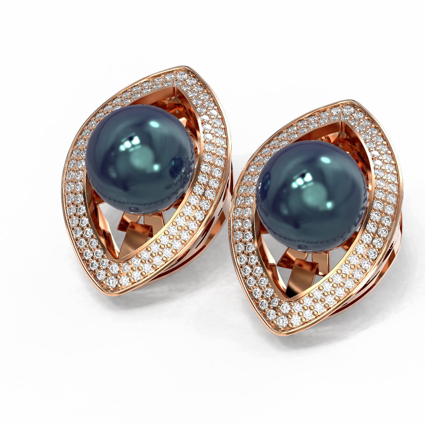 SKU: 55785 ---- 1.61 ctw Diamond & Pearl Earrings 18K Rose Gold