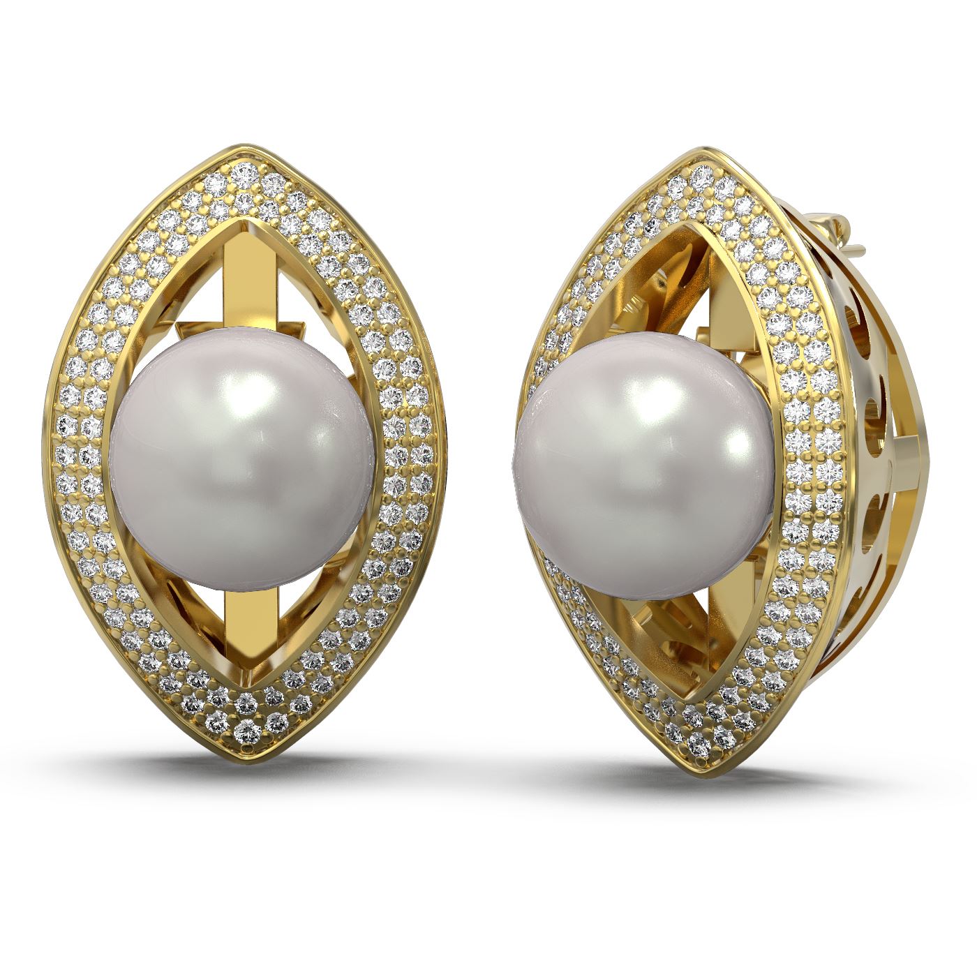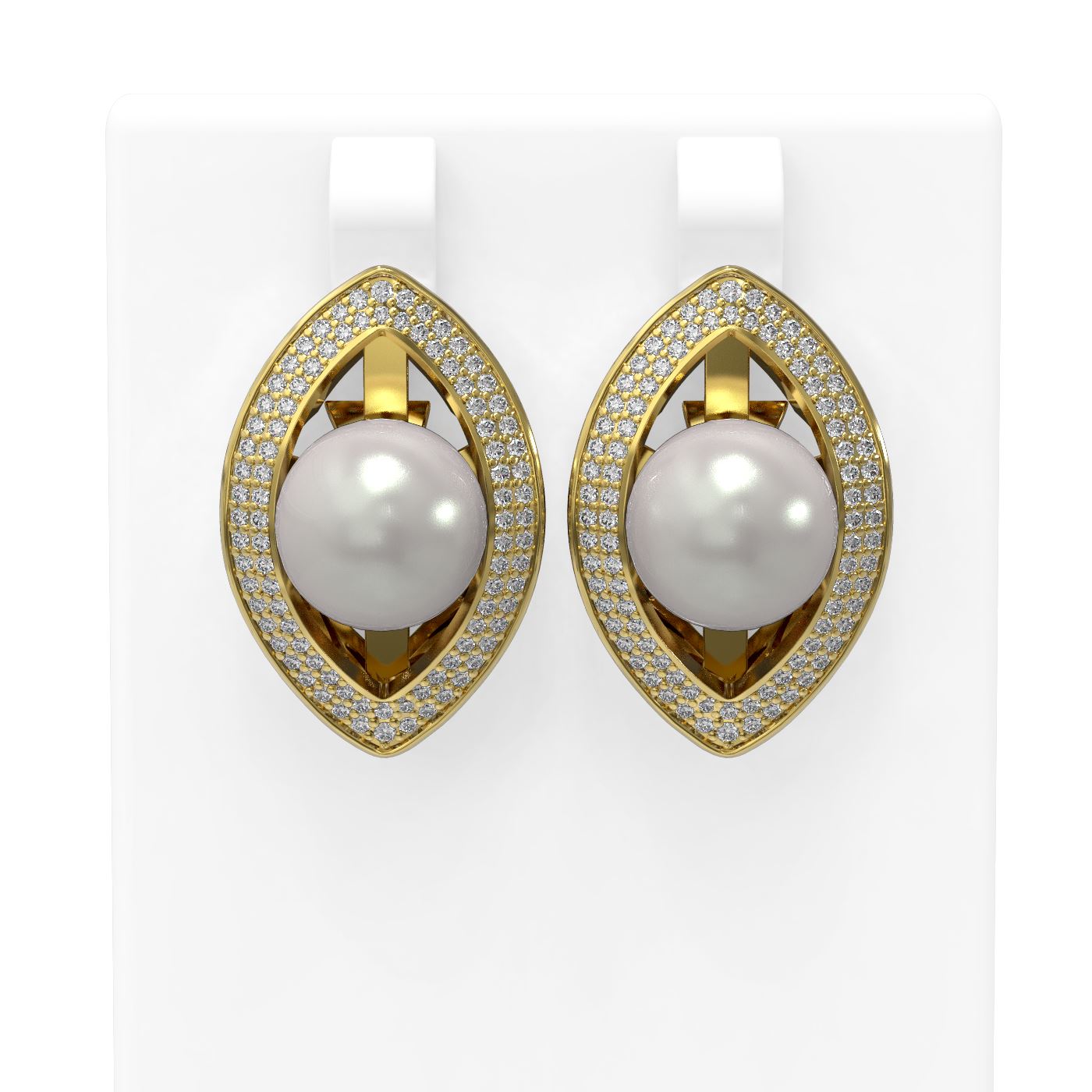 1.61 ctw Diamond and Pearl Earrings 18K Yellow Gold