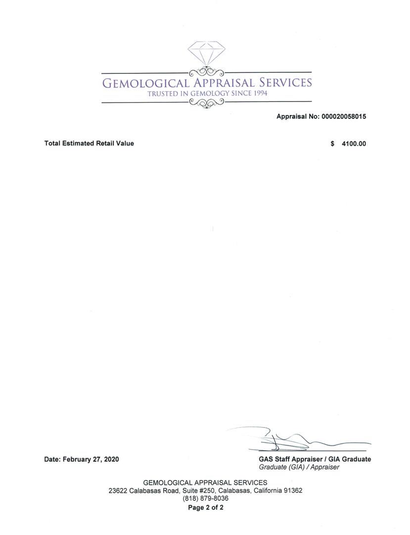 Regarding Appraised Jewelry, Watches and Loose Stones - FAA sends most jewelry, watches, accessories and loose stones out to a third-party for appraisals. All such lots are sold AS IS and may have been worn, been previously repaired, altered, customized (including having been modified with after-market stones or had the bezel changed in its entirety on certain jewelry or watches), or been embellished. For purposes of our actions, the terms custom, modified, or after-market may be used interchangeably. Such wear, repair or changes may display varying levels of evidence. The bidder hereby acknowledges that the absence of any reference to the condition of a lot does not imply the absence of wear, repairs, customization, or defects. While FAA makes every effort to call to the attention of bidders the use of after-market parts in jewelry and watches sold, the use of such parts or stones shall not constitute a warranty or representation that the items are original in their entirety. These modifications, customizations, and alterations may impair the ability of the original manufacturer to repair such item or certify the item as authentic All descriptions and statements related to such lots, including measurement, authorship, source or origin, or other aspects are qualified opines and do not constitute a warranty or representation, and are provided for identification purposes only. Not all Jewelry, watches or loose stones are appraised, and the appraisals are provided for bidders only in certain instances at the discretion of FAA. Our appraisals are conducted by independent third-party appraisal firms. Such firms may be certified GIA Gemologists or have education in the industry or alternative certifications. Appraisals should be used for verification of gemstone and/or metal weight, size, and grade only, not actual value for resale or insurance purposes. Appraisal value should be not considered for actual value, as price varies greatly from retail locations and other merchants in different geographic locations. All Items auctioned by FAA should not be purchased with a view or expectation toward resale for appraisal price given, or to make a profit. The ultimate value for which an item can be resold may vary drastically from the appraisals listed by FAA. All dimensions and weights of such lots are approximate and are consistent with standards and practices in the industry. Condition reports are provided as a service to prospective bidders. Bidders should note that such descriptions are not warranties and that watches may need general service, change of battery or further repair work for which the buyer is solely responsible. Certain watch bands from protected species of animals (i.e. alligator, crocodile) and items made of ivory and tortoise may be subject to restrictions in certain countries.