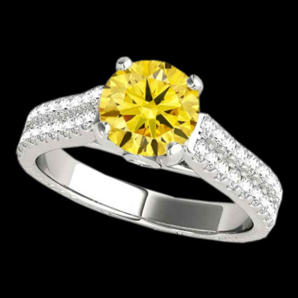 REF-204H5R - SKU: 35463 ---- 1.61 ctw SI/I Fancy Intense Yellow Diamond Pave Ring 10k White Gold