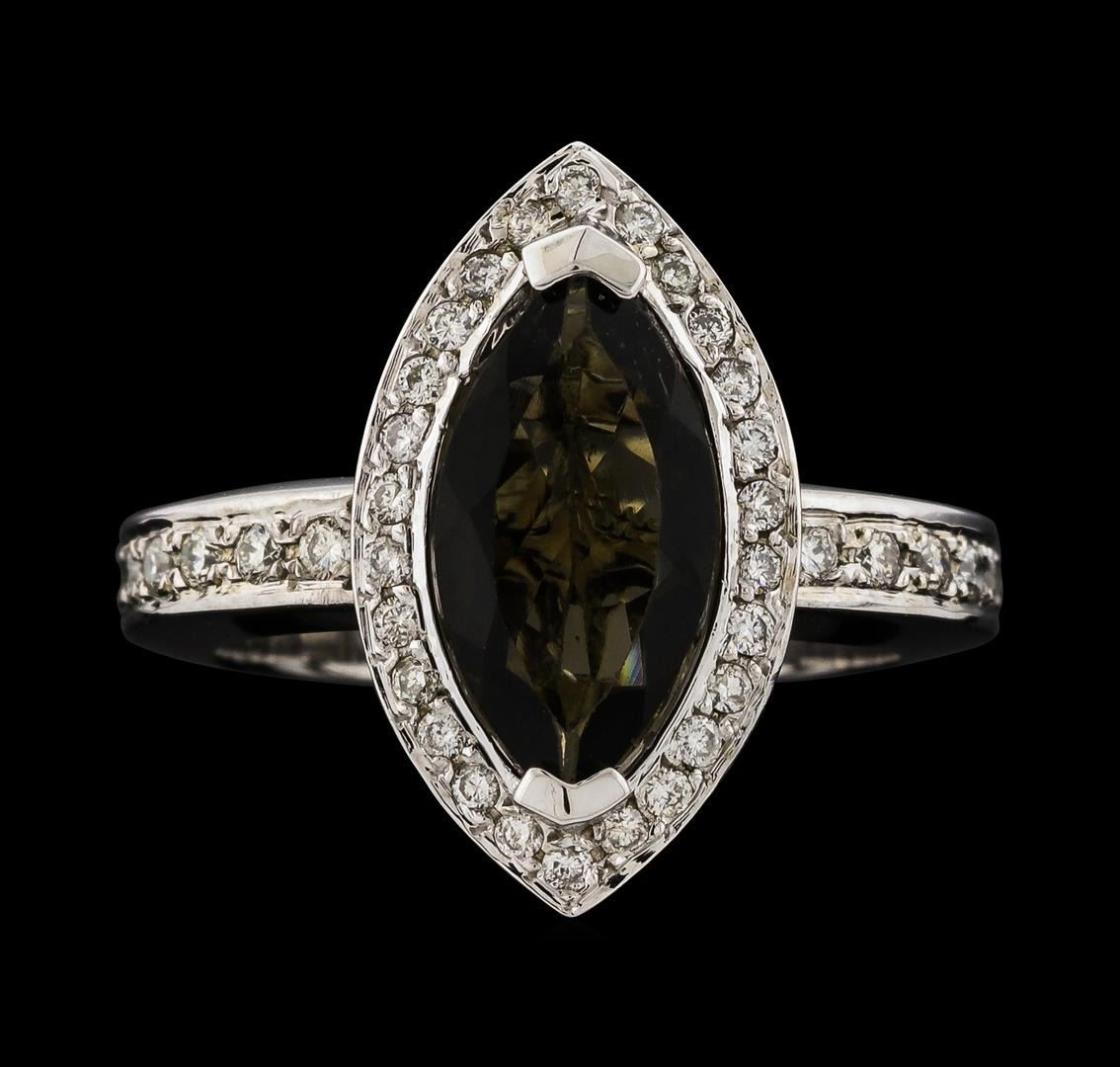 One ring : 14KT white gold weighing 8.28gm containing tourmaline with a total weight of 1.61ctw and side diamonds weighing 0.52ctw.