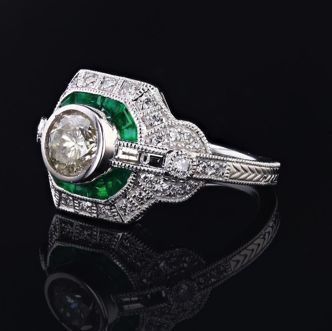1.62ctw Diamond and 1.26ctw Emerald Platinum Ring. Please see Photos and Description for all available information. This platinum ring features a 1.62ct brilliant cut diamond and a 1.26ct emerald cut diamond. There are also 36 round brilliant cut diamonds and 26 emerald cut diamonds. The ring is size 6 3/4.