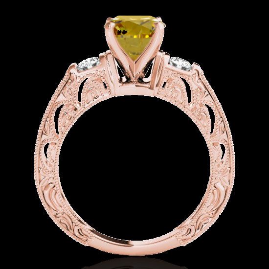 REF-218W2F -34656 ---- 1.63 CTW Certified Si Intense Yellow Diamond Solitaire Antique Ring 10K Rose Gold ---- Luxury Designer Brand Ring Appraised at $14,400 Certificate Number US34656 10k Rose gold, Ring Size is 7, Ring measuring approx. Uniform, weighing in total approx. 5.2 grams. Made in the USA and is stamped 10k, Main stone 1.25 carat total weight containing 1 pieces of Intense Fancy Yellow color with SI quality Round shape cut Diamond , Stone #2 0.38 carat total weight containing 10 pieces of H-I color with VS/SI quality Round shape cut Diamond