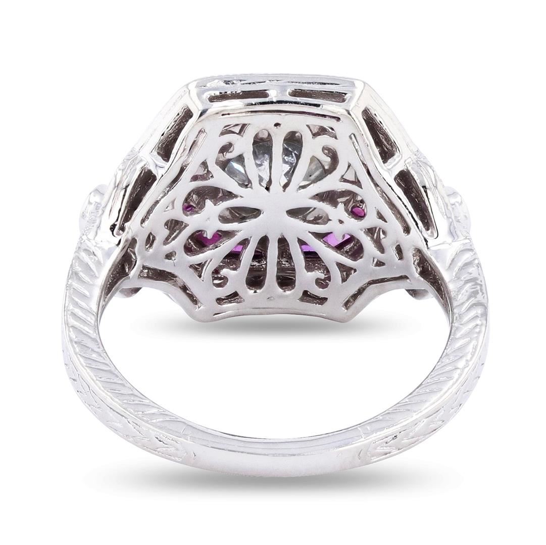Description of Article: Ruby & Diamond Ring Diamonds Carat: 1.63 CTW Approx. Cut: Round Cut Color: H - J Clarity: SI to I Ruby Carat: 0.85 CT. Approx. Cut: Rectangular Cut Color: Red Quality: AAA Additional Info. Metal Purity: Platinum