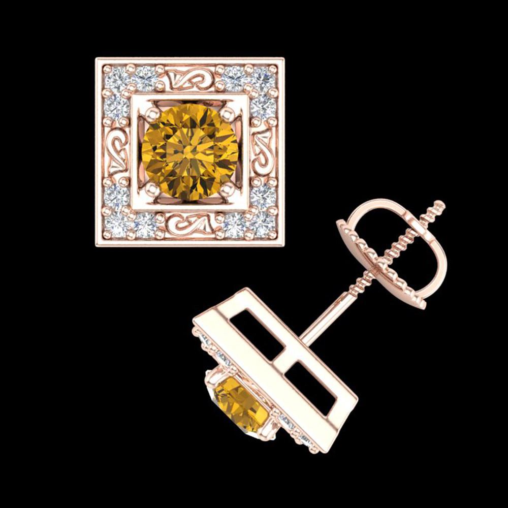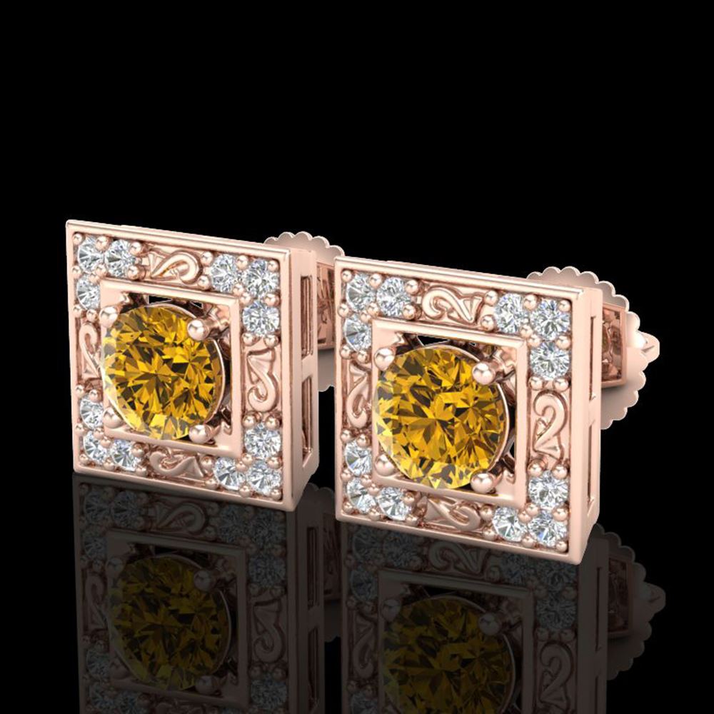 REF-218M2G - SKU: 38163 ---- 1.63 ctw Intense Fancy Yellow Diamond Art Deco Earrings 18k Rose Gold