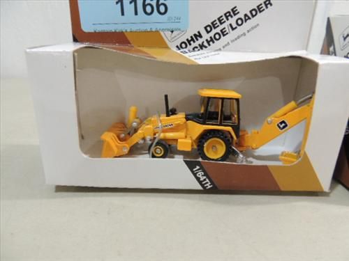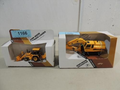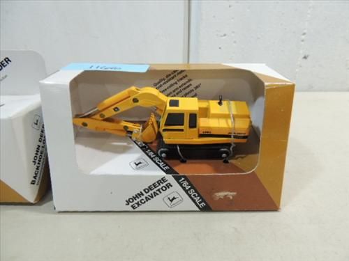 1/64 SCALE ERTL JOHN DEERE DIE CAST METAL: BACKHOE & EXCAVATOR. AS SHOWN. VIEW PICTURE FOR DETAIL.