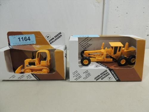 1/64 SCALE ERTL JOHN DEERE DIE CAST METAL: GRADER & BULLDOZER. AS SHOWN. VIEW PICTURE FOR DETAIL.