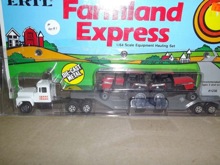 1/64 Stock No. 1236 Frmlnd Exp Mac Equipment Hauler with Case 2594 Tractors