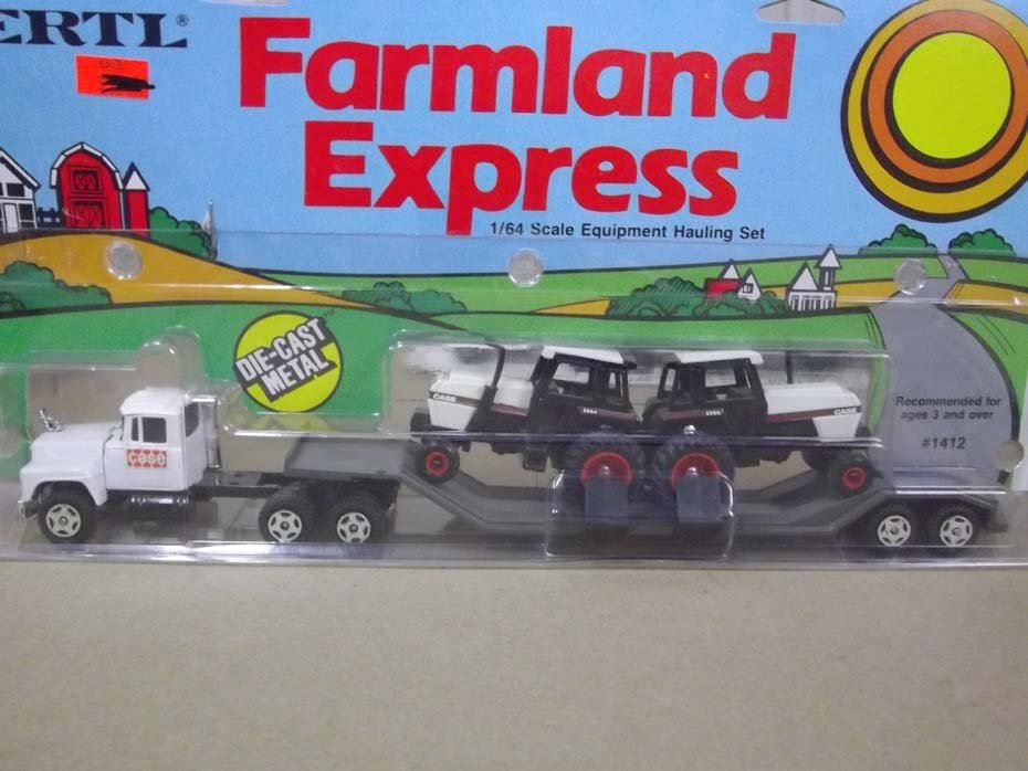 1/64 Stock No. 1412 Frmlnd Exp Mac Equipment Hauler with Case 2294 Tractors