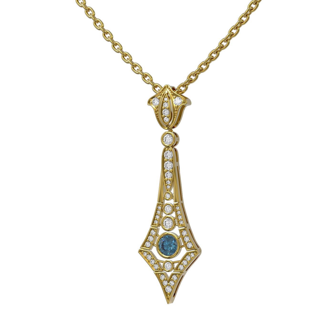 SKU: 56215 ---- 1.64 ctw Intense Blue Diamond Necklace 18K Yellow Gold