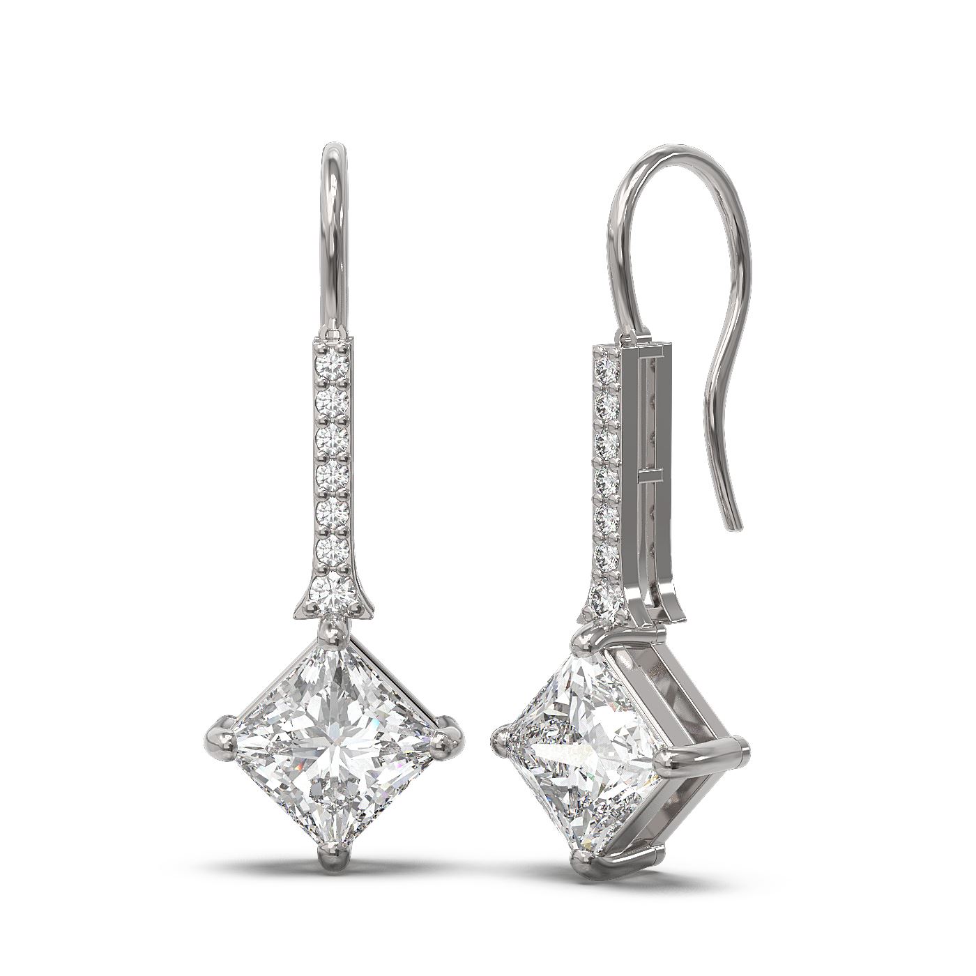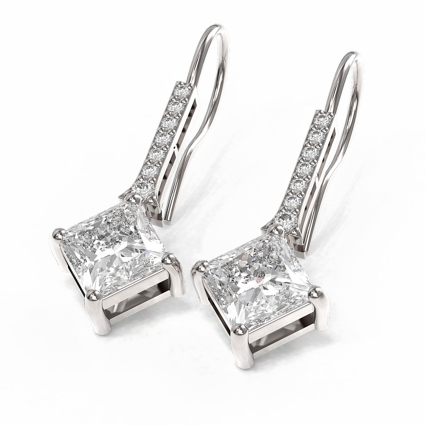 REF-272M2G - SKU: 57089 ---- 1.64 ctw Princess Diamond Earrings 18K White Gold