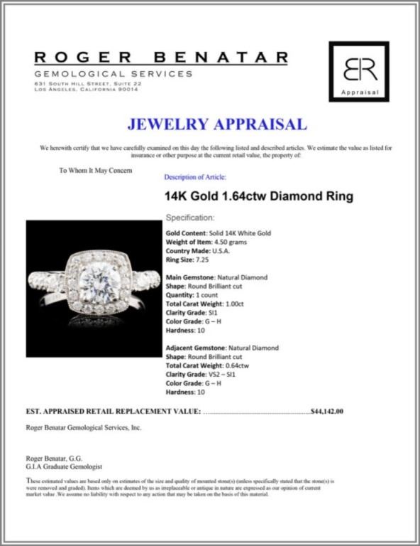 Regarding Appraised Jewelry and Loose Stones - Auctionfarm sends them out to a third party for Retail Replacement Value Appraisals, which are the most common. These types of evaluations are written for insurance needs. This would be the cost to replace the jewelry with an item of equal quality and kind, considered to be the current market price or the replacement value. This type of appraisal is done to protect you in the event of damage or loss of a valuable item. Our appraisals are conducted by independent 3rd Party appraisal firms that utilizes Certified GIA Gemologist. Appraisals should be used for verification of gemstone and/or metal weight, size, and grade only, not actual value. Appraisal value should be considered for insurance purposes only, not actual value, as price varies greatly from retail locations thru out the world. Items should not be purchased with the expectation to resell for appraisal price, or for profit.