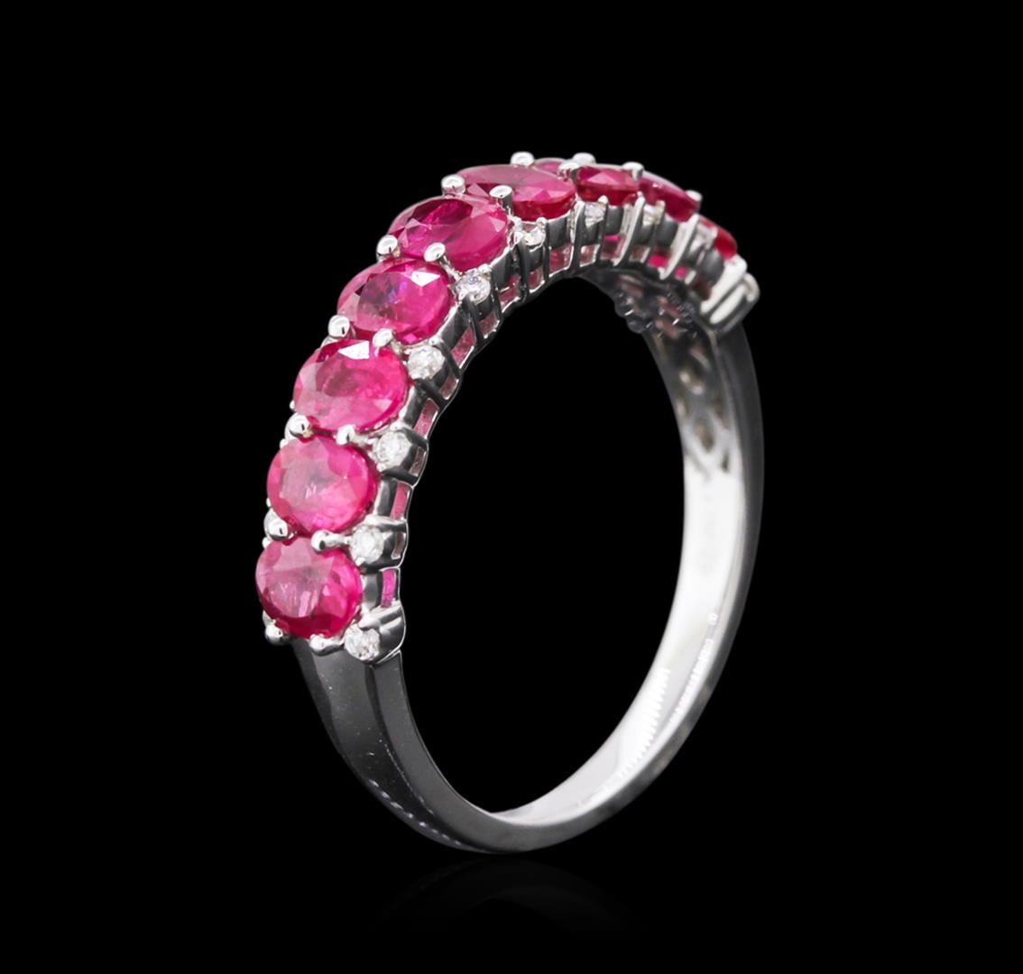 One ring featuring: 18KT white gold weighing 2.10 grams containing rubies with a total weight of 1.64ct and 20 brilliant cut diamonds with a total weight of 0.11ct.
