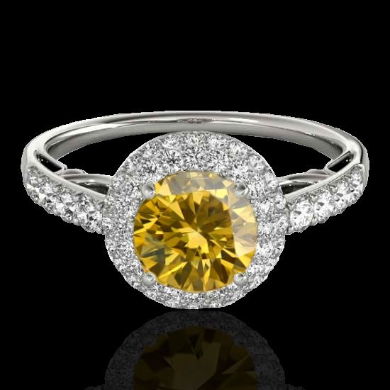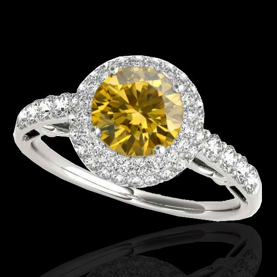 REF-178M2H -33704 ---- 1.65 CTW Certified Si/I Fancy Intense Yellow Diamond Solitaire Halo Ring 10K White Gold ---- Luxury Designer Brand Ring Appraised at $11,750 Certificate Number US33704 10k White gold, Ring Size is 7, Ring measuring approx. Uniform, weighing in total approx. 5.2 grams. Made in the USA and is stamped 10k, Main stone 1 carat total weight containing 1 pieces of Intense Fancy Yellow color with SI quality Round shape cut Diamond , Stone #2 0.65 carat total weight containing 54 pieces of H-I color with VS/SI quality Round shape cut Diamond