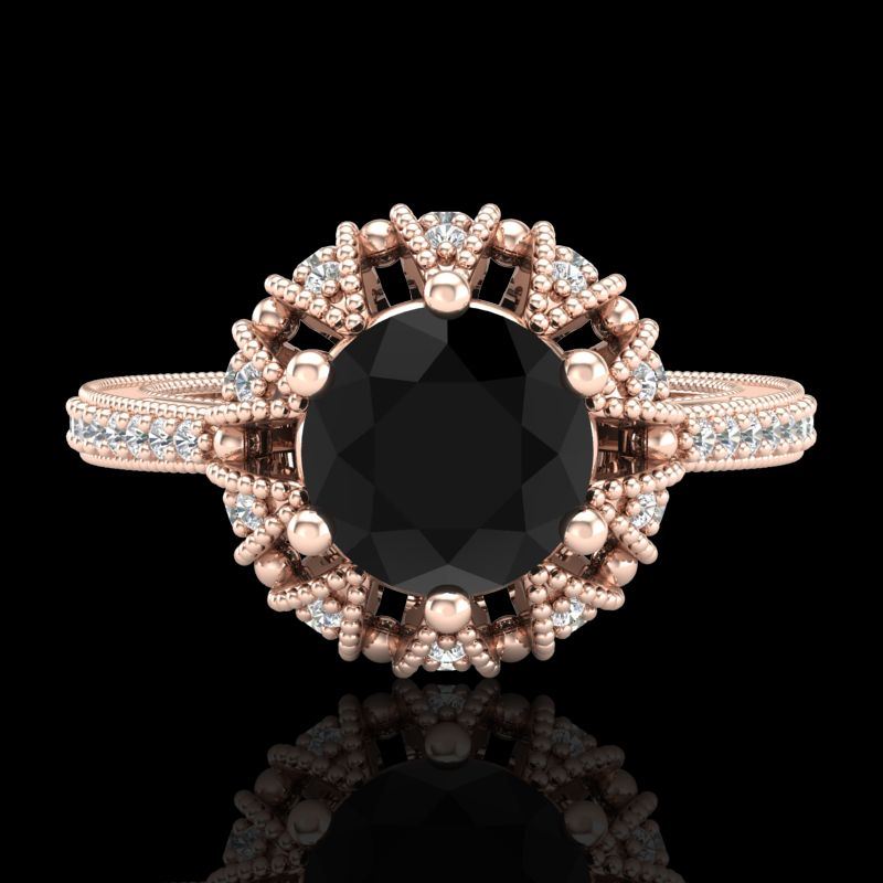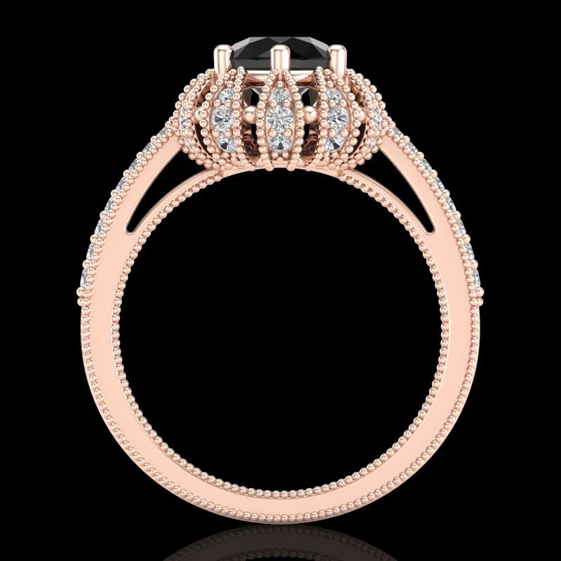 REF-132W8F -37724 ---- 1.65 CTW Fancy Black Diamond Engagement Art Deco Micro Pave Ring 18K Rose Gold ---- Luxury Designer Brand Ring Appraised at $8,050 Certificate Number US37724 18k Rose gold, Ring Size is 7, Ring measuring approx. Uniform, weighing in total approx. 6 grams. Made in the USA and is stamped 18k, Main stone 1 carat total weight containing 1 pieces of Black Opaque color with VS quality Round shape cut Diamond , Stone #2 0.65 carat total weight containing 46 pieces of H-I color with VS/SI quality Round shape cut Diamond