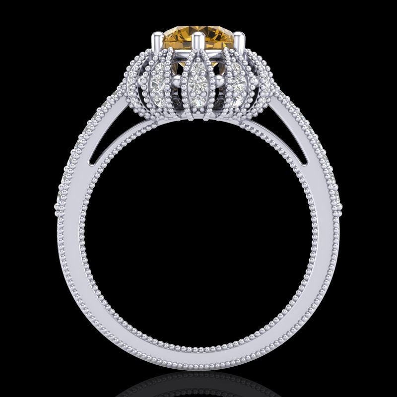REF-230W9F -37728 ---- 1.65 CTW Intense Fancy Yellow Diamond Engagement Art Deco Ring 18K White Gold ---- Luxury Designer Brand Ring Appraised at $13,950 Certificate Number US37728 18k White gold, Ring Size is 7, Ring measuring approx. Uniform, weighing in total approx. 6 grams. Made in the USA and is stamped 18k, Main stone 1 carat total weight containing 1 pieces of Intense Fancy Yellow color with SI quality Round shape cut Diamond , Stone #2 0.65 carat total weight containing 46 pieces of H-I color with VS/SI quality Round shape cut Diamond
