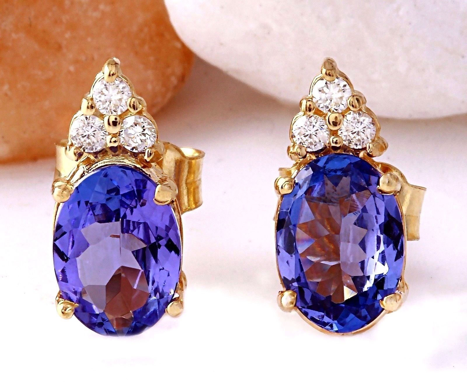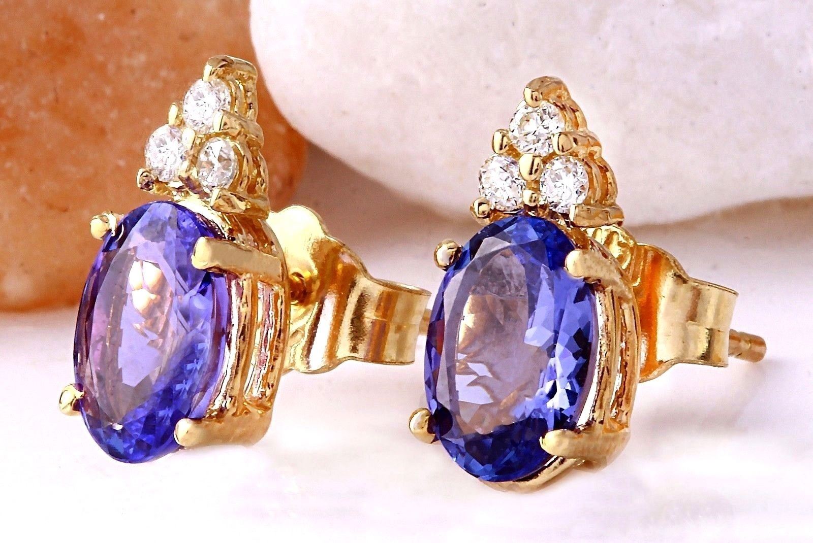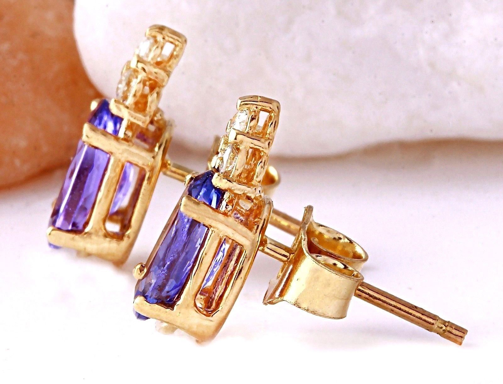 1.65 Carat Natural Tanzanite 18K Solid Yellow Gold Diamond Stud Earrings