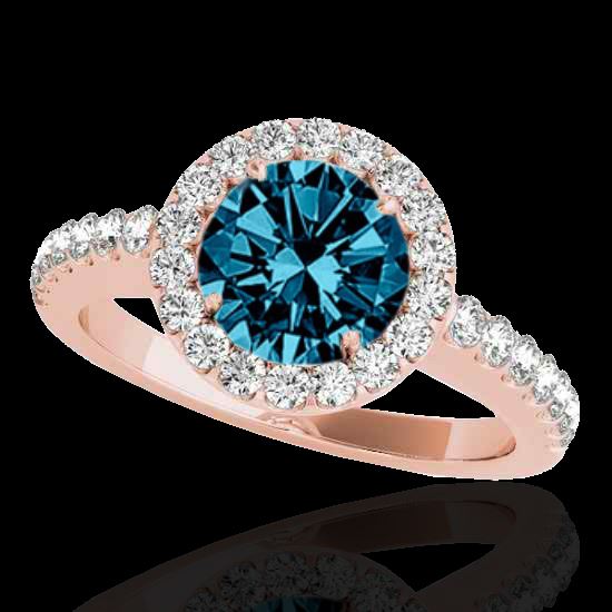 REF-200W2F -33478 ---- 1.65 CTW Si Certified Fancy Blue Diamond Solitaire Halo Ring 10K Rose Gold ---- Luxury Designer Brand Ring Appraised at $12,100 Certificate Number US33478 10k Rose gold, Ring Size is 7, Ring measuring approx. Uniform, weighing in total approx. 4.5 grams. Made in the USA and is stamped 10k, Main stone 1 carat total weight containing 1 pieces of Intense Fancy Blue color with SI quality Round shape cut Diamond , Stone #2 0.65 carat total weight containing 32 pieces of H-I color with VS/SI quality Round shape cut Diamond