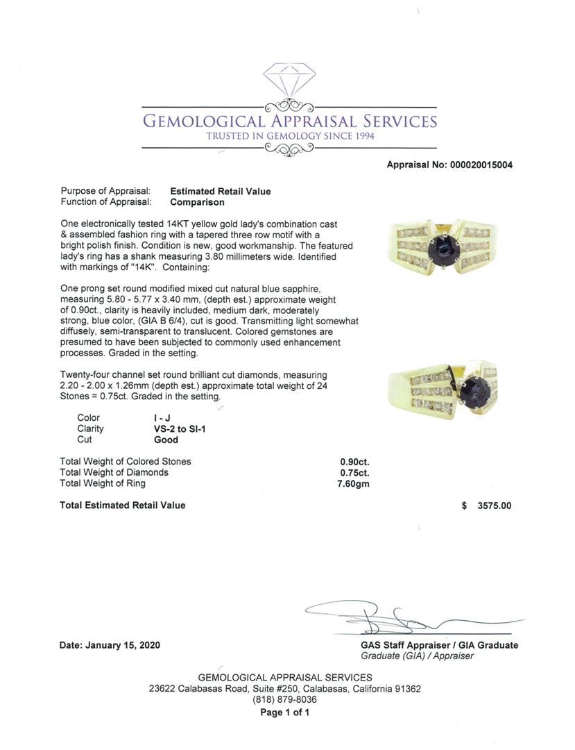 One electronically tested 14KT yellow gold lady's combination cast & assembled fashion ring with a tapered three row motif with a bright polish finish. The featured lady's ring has a shank measuring 3.80 millimeters wide. Identified with markings of '14K'