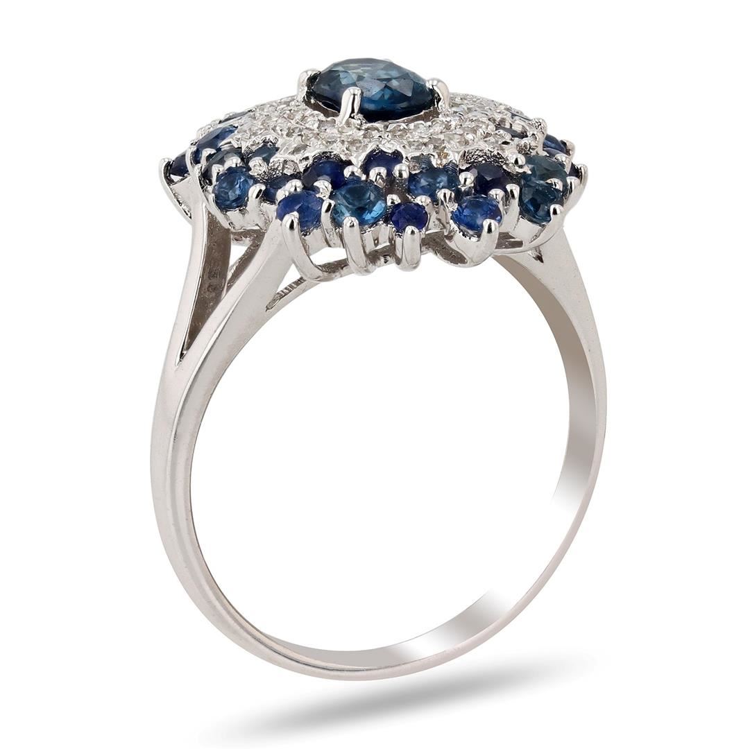 14K Gold Sapphire Diamond Ring One polished, stamped, and tested 14K white gold ring with a bright finish. The ring is mounted with 33 genuine sapphires weighing approximately 1.65 carats, and 66 genuine round diamonds weighing approximately 0.14 carats. This item weighs 4.2 grams, condition is new, excellent workmanship. MAIN GEMSTONES Species: Natural Corundum Variety: Sapphire Shape: Oval / Round Quantity: 33 Sapphires Measurements: 6 x 4 mm (1 oval) 1.5 - 2.0 mm (32 round) Total Weight: 1.65 carats Color: Blue Cut Grade: Good - Very Good Refractive Index: 1.762 - 1.770 DR Birefringence: 0.008 - 0.010 Hardness: 9 ADJACENT GEMSTONES ON RING Identity: Natural Diamond Shape: Round Quantity: 66 Diamonds Measurements: 0.8 - 1.0 mm Total Weight: 0.14 carats Clarity Grade: SI1 - SI2 Color Grade: G - H Refractive Index: 2.418 Hardness: 10 TOTAL SAPPHIRE WEIGHT: 1.65ctw TOTAL DIAMOND WEIGHT: 0.14ctw WEIGHT OF ITEM: 4.2 grams GOLD CONTENT: 14K White Gold