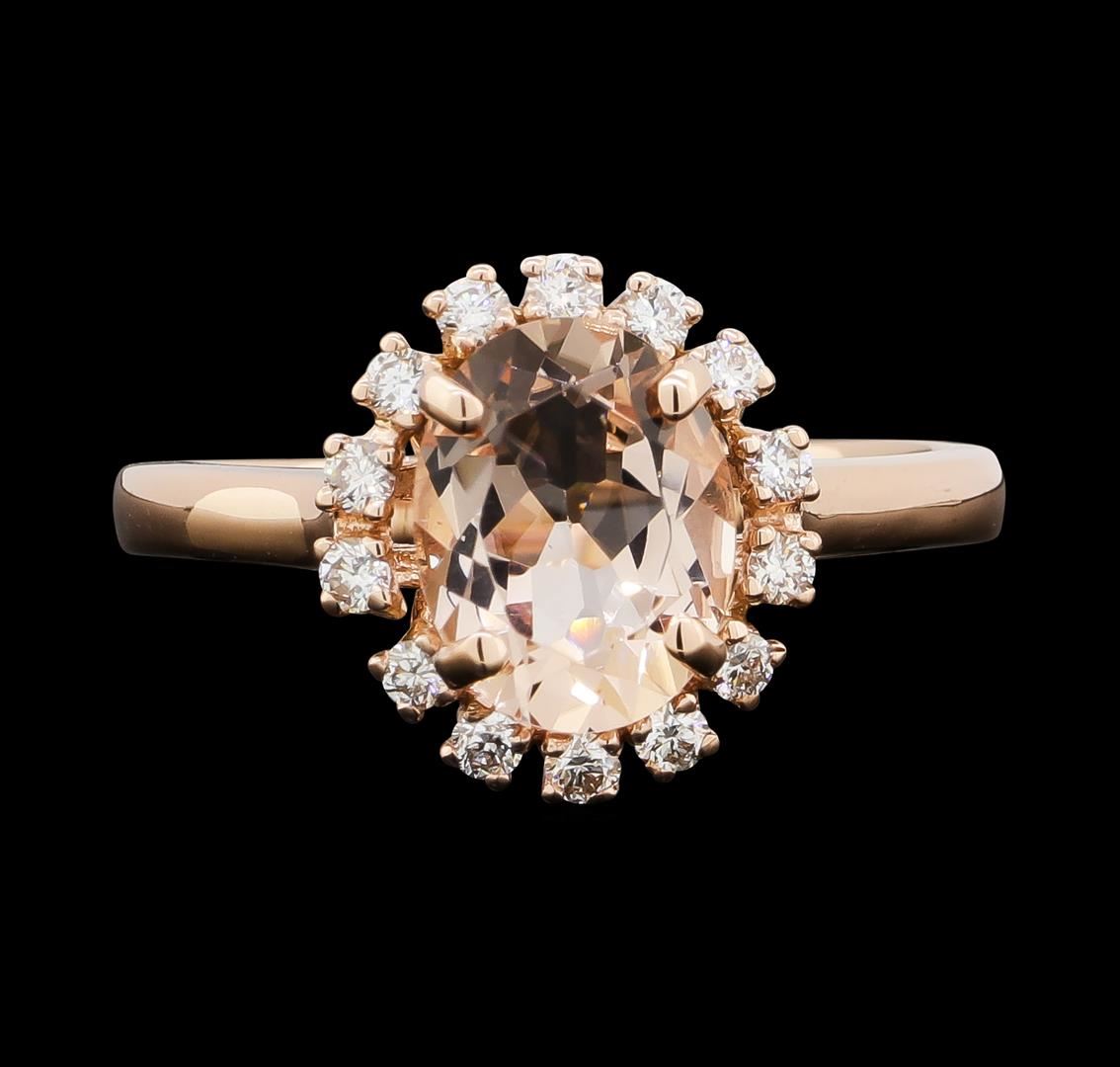 One ring: 14KT rose gold weighing 2.80 grams containing one oval cut morganite weighing 1.65ct and diamonds weighing 0.25ctw.