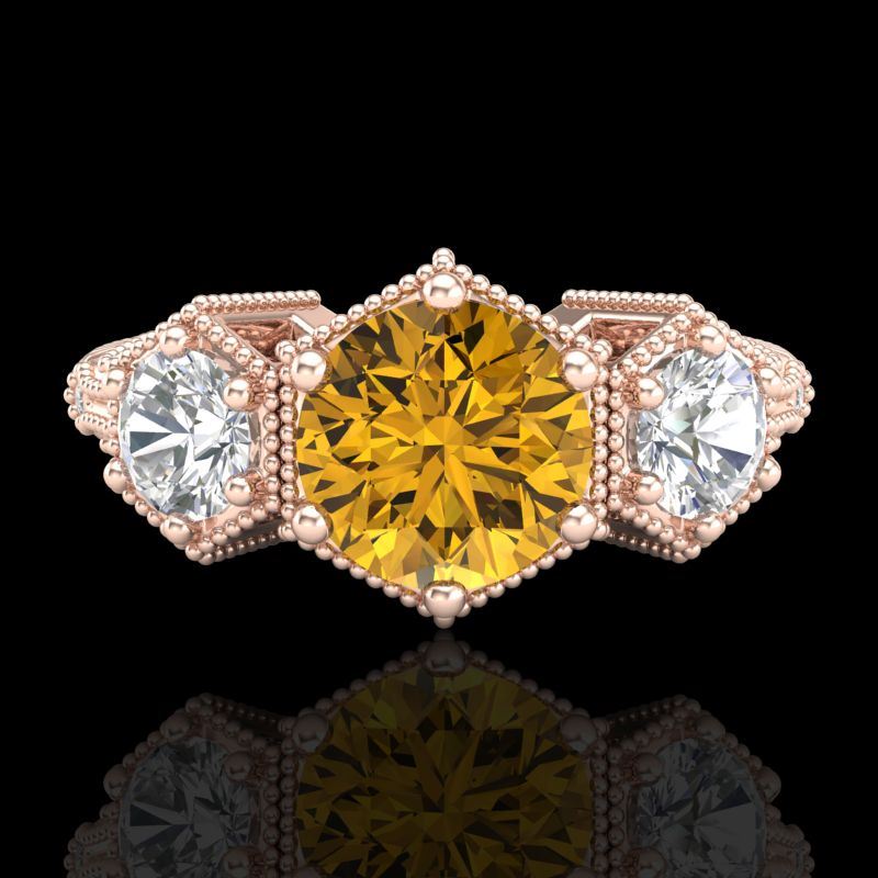 REF-254F5N -38058 ---- 1.66 CTW Intense Fancy Yellow Diamond Art Deco 3 Stone Ring 18K Rose Gold ---- Luxury Designer Brand 3 stone ring Appraised at $15,400 Certificate Number US38058 18k Rose gold, 3 stone ring Size is 7, 3 stone ring measuring approx. Uniform, weighing in total approx. 5.3 grams. Made in the USA and is stamped 18k, Main stone 1 carat total weight containing 1 pieces of Intense Fancy Yellow color with SI quality Round shape cut Diamond , Stone #2 0.51 carat total weight containing 2 pieces of H-I color with VS/SI quality Round shape cut Diamond , Stone #3 0.15 carat total weight containing 10 pieces of G-H color with VS/SI quality Round shape cut Diamond