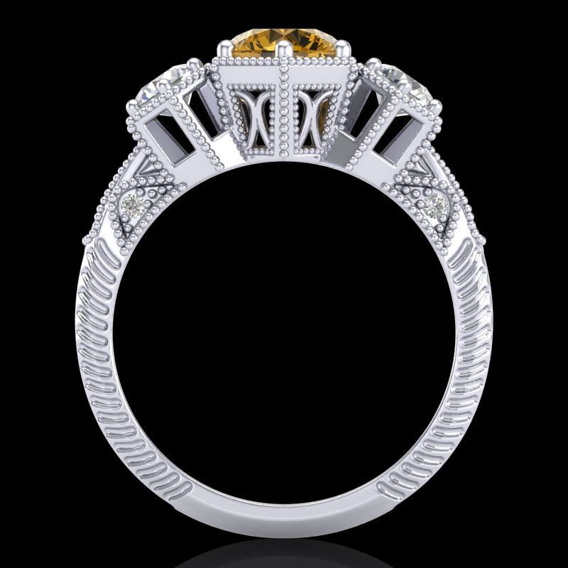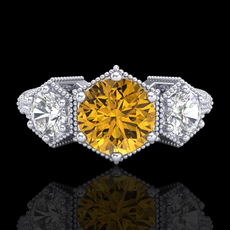 REF-254K5W -38057 ---- 1.66 CTW Intense Fancy Yellow Diamond Art Deco 3 Stone Ring 18K White Gold ---- Luxury Designer Brand 3 stone ring Appraised at $15,400 Certificate Number US38057 18k White gold, 3 stone ring Size is 7, 3 stone ring measuring approx. Uniform, weighing in total approx. 5.3 grams. Made in the USA and is stamped 18k, Main stone 1 carat total weight containing 1 pieces of Intense Fancy Yellow color with SI quality Round shape cut Diamond , Stone #2 0.51 carat total weight containing 2 pieces of H-I color with VS/SI quality Round shape cut Diamond , Stone #3 0.15 carat total weight containing 10 pieces of G-H color with VS/SI quality Round shape cut Diamond