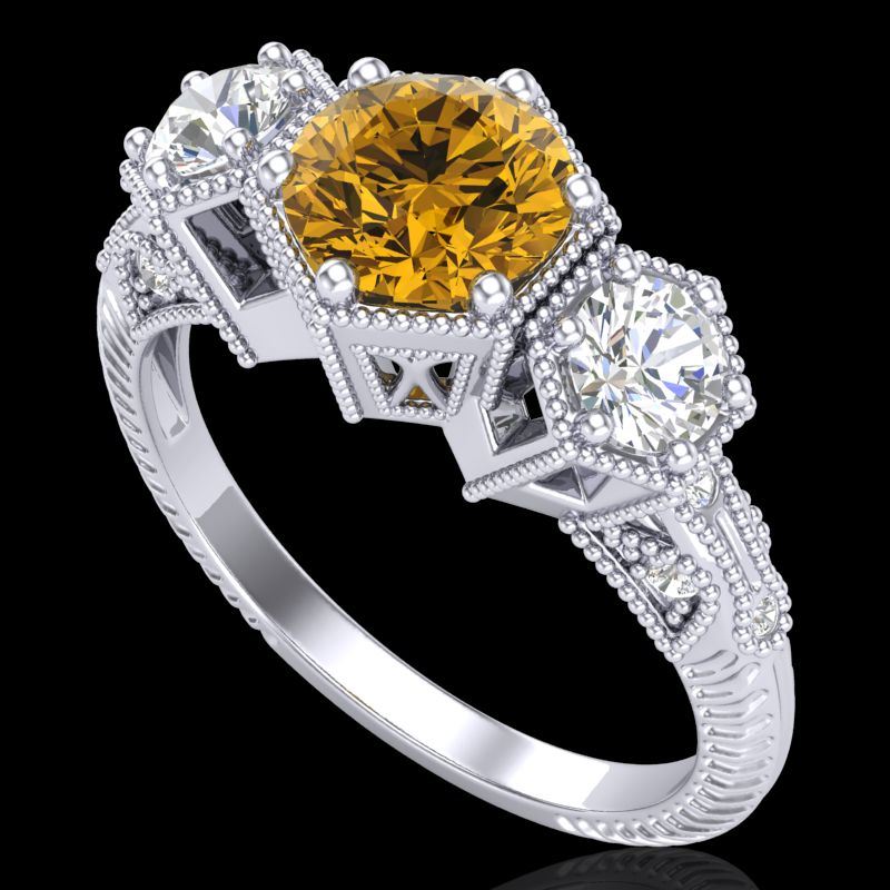 REF-254K5W -38057 ---- 1.66 CTW Intense Fancy Yellow Diamond Art Deco 3 Stone Ring 18K White Gold ---- Luxury Designer Brand 3 stone ring Appraised at $15,400 Certificate Number US38057 18k White gold, 3 stone ring Size is 7, 3 stone ring measuring approx. Uniform, weighing in total approx. 5.3 grams. Made in the USA and is stamped 18k, Main stone 1 carat total weight containing 1 pieces of Intense Fancy Yellow color with SI quality Round shape cut Diamond , Stone #2 0.51 carat total weight containing 2 pieces of H-I color with VS/SI quality Round shape cut Diamond , Stone #3 0.15 carat total weight containing 10 pieces of G-H color with VS/SI quality Round shape cut Diamond