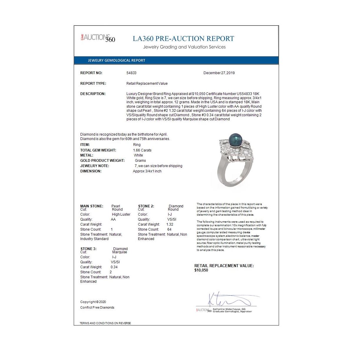 REF-202X9A - SKU: 54833 ---- 1.66 ctw Diamond & Pearl Ring 18K White Gold
