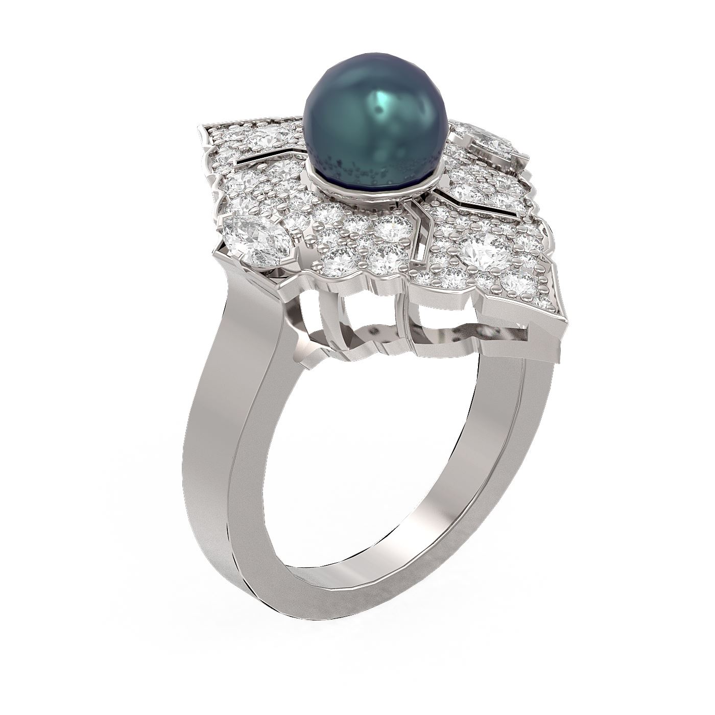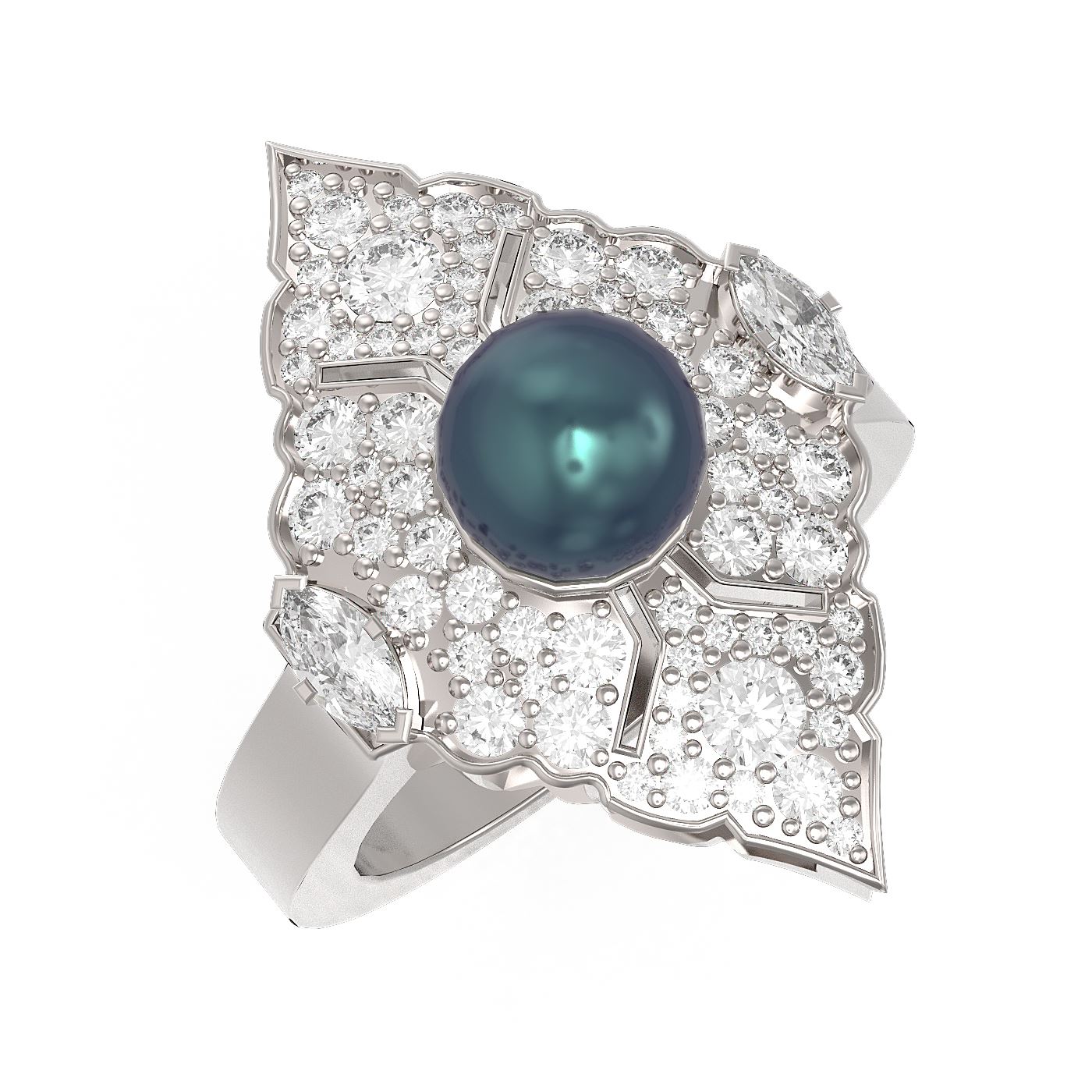 SKU: 54833 ---- 1.66 ctw Diamond & Pearl Ring 18K White Gold