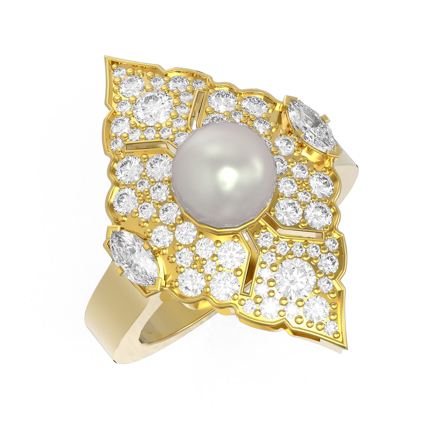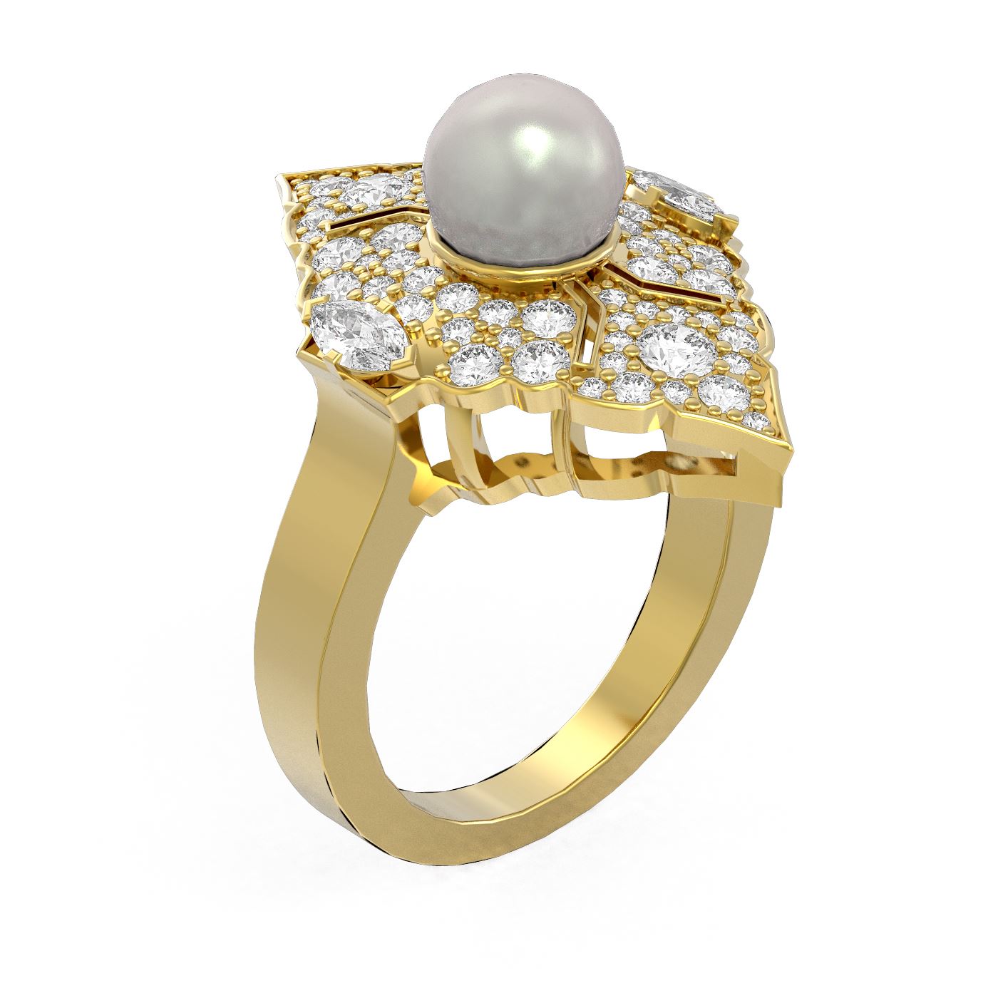 SKU: 54838 ---- 1.66 ctw Diamond & Pearl Ring 18K Yellow Gold