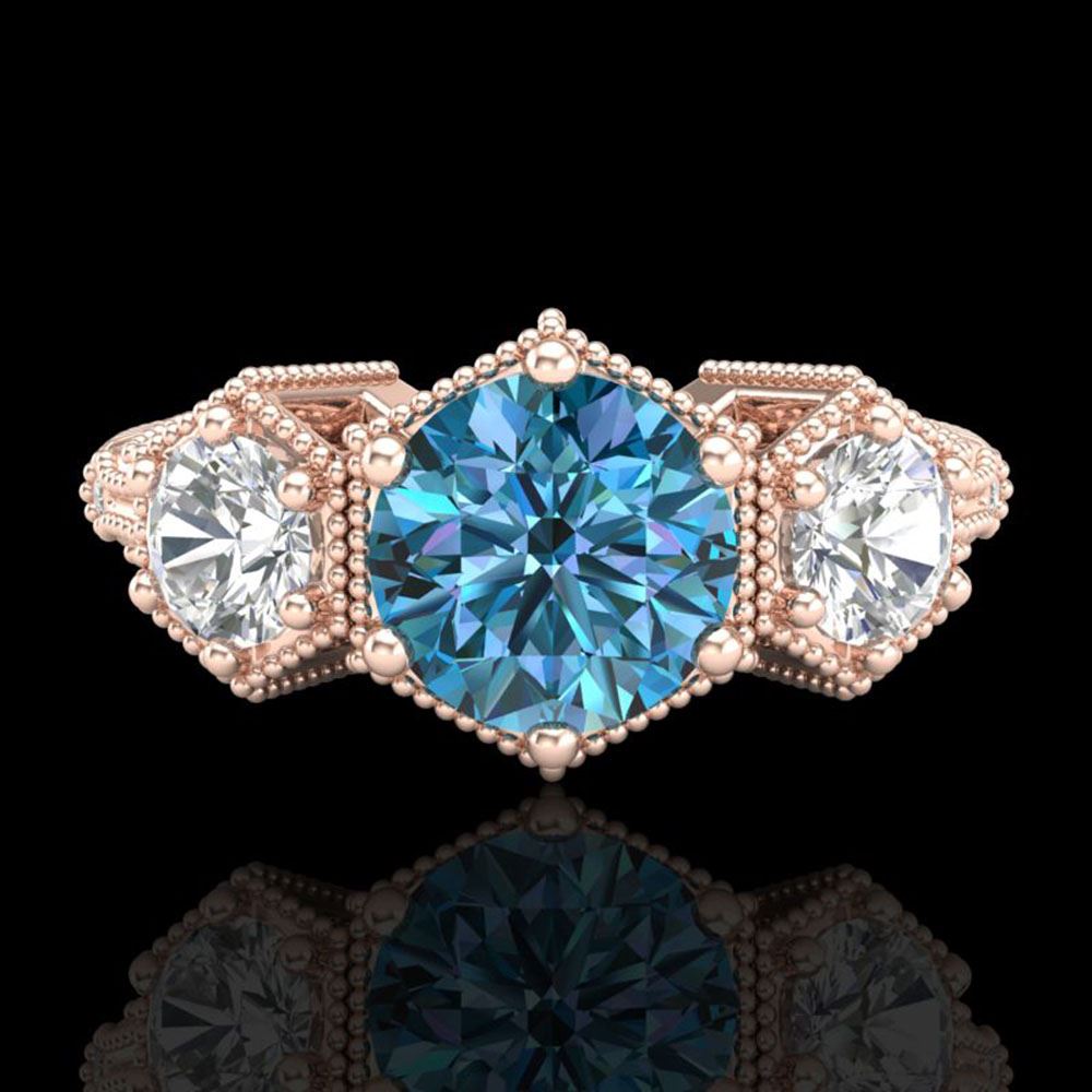 REF-254G5W - SKU: 38056 ---- 1.66 ctw Intense Blue Diamond Art Deco 3 Stone Ring 18k Rose Gold