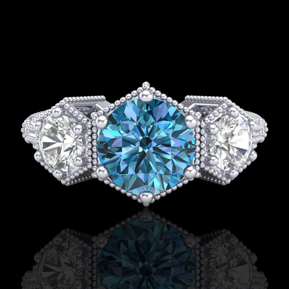 REF-254F5M - SKU: 38055 ---- 1.66 ctw Intense Blue Diamond Art Deco 3 Stone Ring 18k White Gold