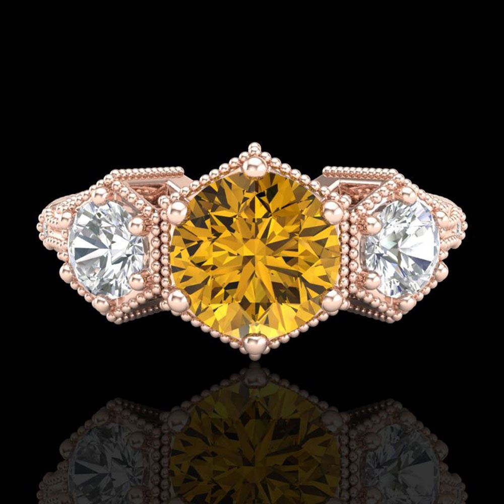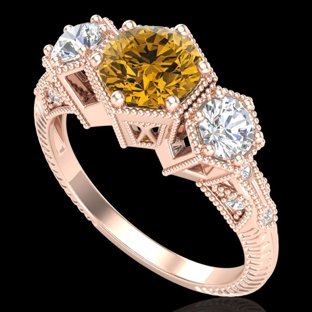 SKU: 38058 ---- 1.66 ctw Intense Fancy Yellow Diamond Art Deco Ring 18k Rose Gold