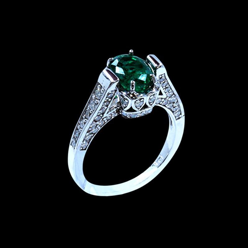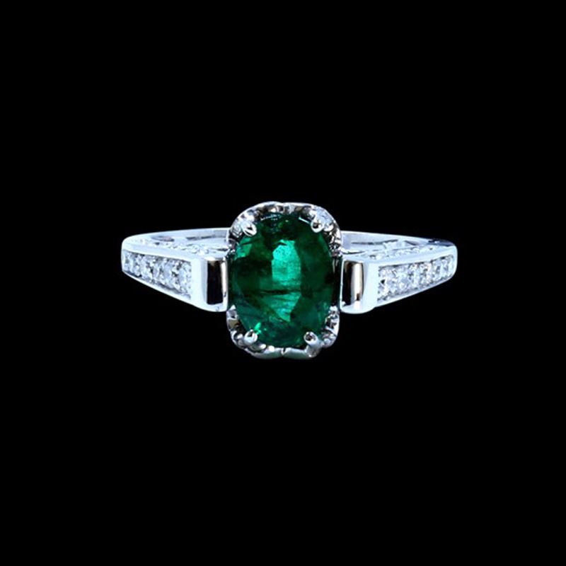 14K WHITE GOLD NATURAL COLUMBIAN EMERALD RING: 4.52GRAM /EMERALD OVAL: 1.66CT/DIAMOND :0.81CT/#GVR1276