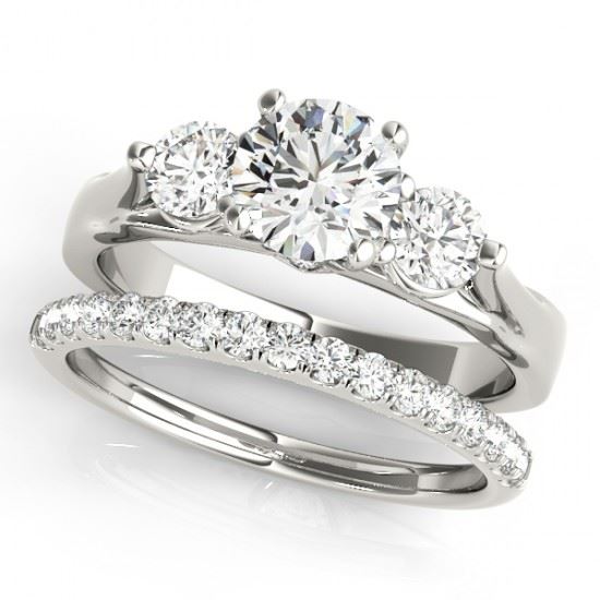 1.67 CTW Certified VS/SI Diamond 3 Stone 2Pc Wedding Set 14K White Gold ---- Luxury Designer Brand 2 Pc Set Appraised Retail Price at $14,050 ---- SKU Number US32030 14k White gold 2 Pc Set Size is 7, 2 Pc Set measuring approx. Uniform, weighing in total approx. 8.8 grams. Made in the USA and is stamped 14k, Main stone 0.75 carat total weight containing 1 pieces of H-J color with VS/SI quality Round shape cut Diamond , Stone #2 0.5 carat total weight containing 4 pieces of H-I color with VS/SI quality Round shape cut