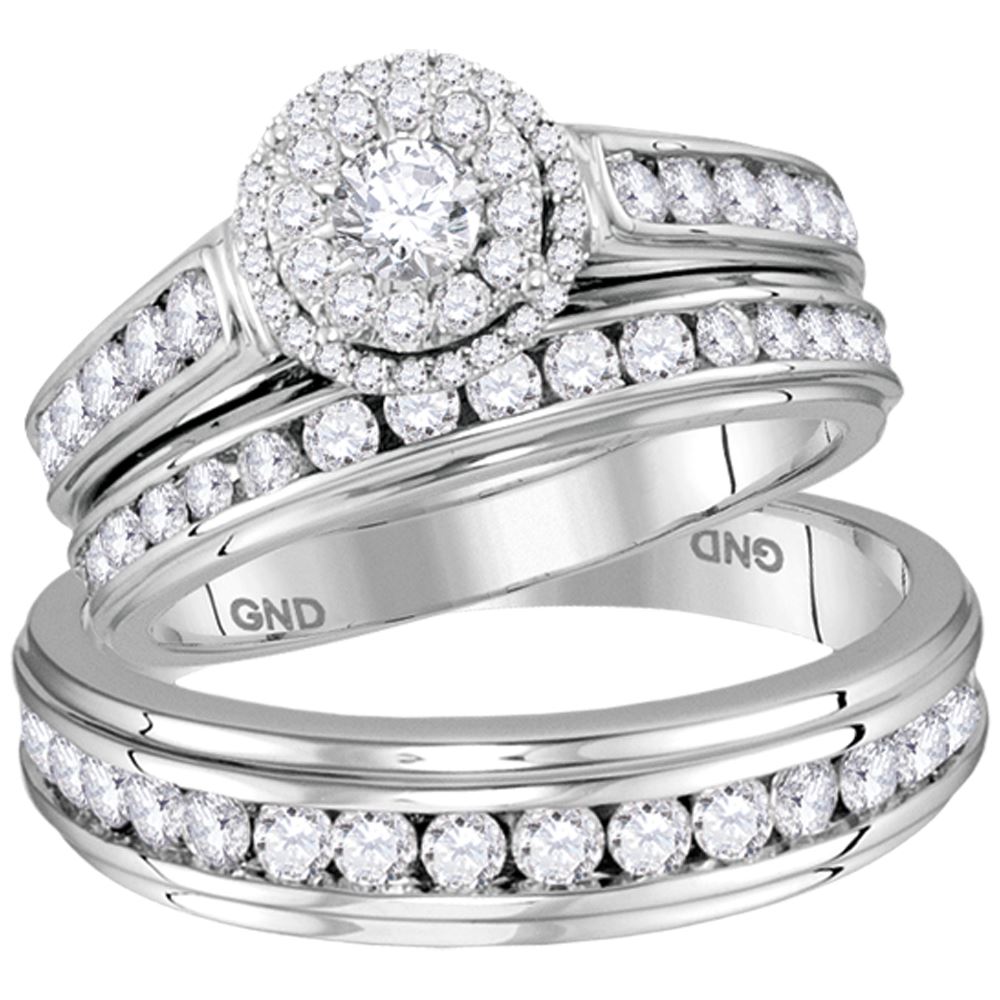 REF-179W9K- SKU: GD113970 ---- 1.67 CTW His & Hers Diamond Solitaire Matching Bridal Ring 14KT White Gold