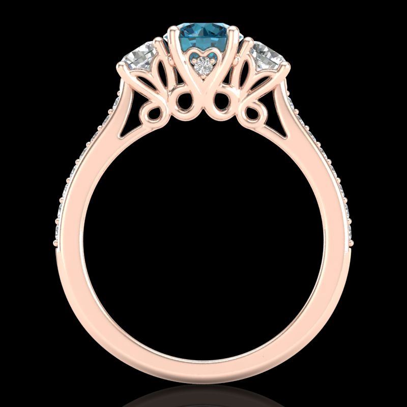 REF-200N2Y -37811 ---- 1.67 CTW Intense Blue Diamond Solitaire Art Deco 3 Stone Ring 18K Rose Gold ---- Luxury Designer Brand 3 stone ring Appraised at $12,100 Certificate Number US37811  18k Rose gold,  3 stone ring Size is 7, 3 stone ring measuring approx. Uniform, weighing in total approx. 5 grams. Made in the USA and is stamped 18k, Main stone 0.77 carat total weight containing 1 pieces of Intense Fancy Blue color with SI quality Round shape cut Diamond , Stone #2 0.55 carat total weight containing 2 pieces of H-I color with  VS/SI quality Round shape cut Diamond , Stone #3 0.35 carat total weight containing 18 pieces of G-H color with VS/SI quality  Round shape cut Diamond