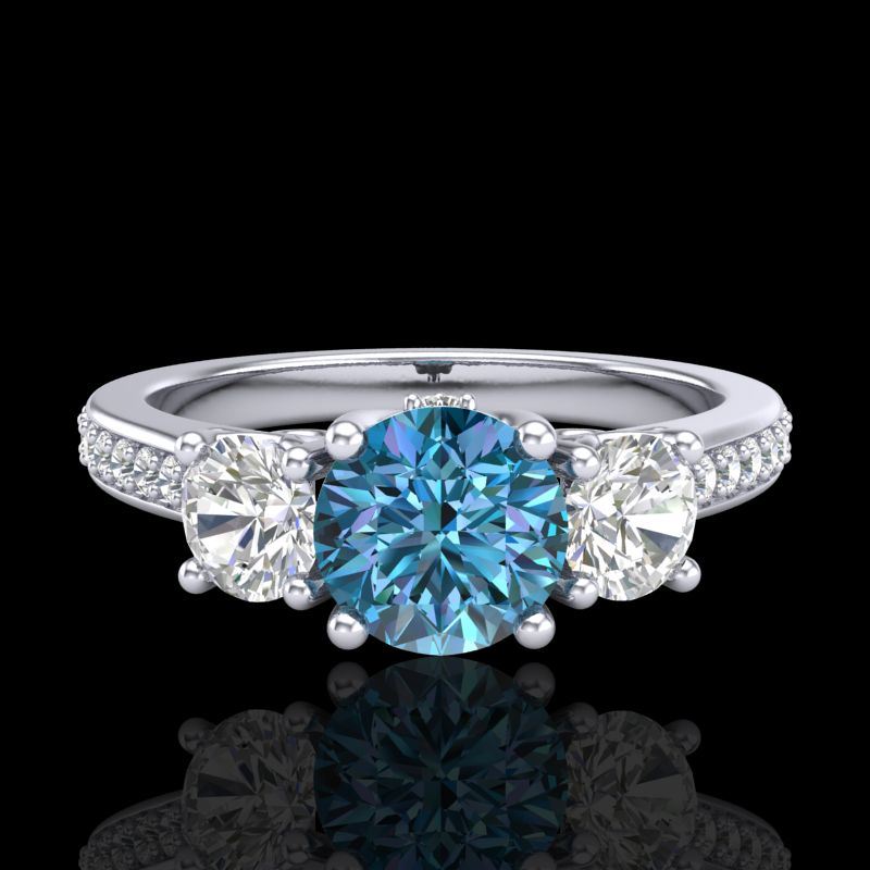 1.67 CTW Intense Blue Diamond Solitaire Art Deco 3 Stone Ring 18K White Gold ---- Luxury Designer Brand 3 stone ring Appraised Retail Price at $12,100 ---- SKU Number US37810 18k White gold 3 stone ring Size is 7, 3 stone ring measuring approx. Uniform, weighing in total approx. 8 grams. Made in the USA and is stamped 18k, Main stone 0.77 carat total weight containing 1 pieces of Intense Fancy Blue color with SI quality Round shape cut Diamond , Stone #2 0.55 carat total weight containing 2 pieces of H-I color with VS/SI quality Round shape cut