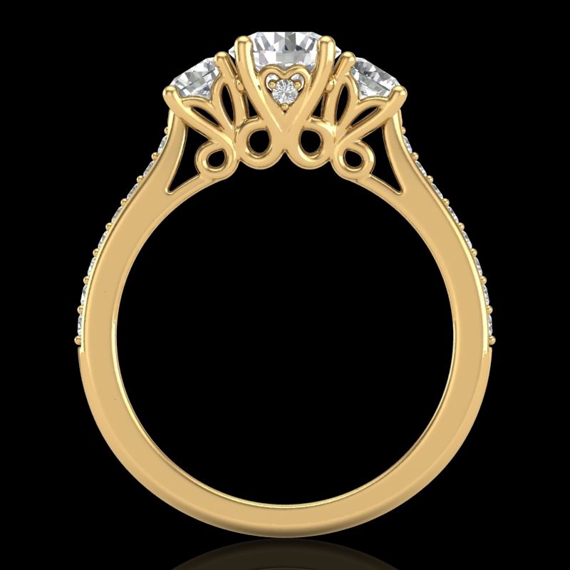 REF-281T8M -37030 ---- 1.67 CTW VS/SI Diamond Solitaire Art Deco 3 Stone Ring 18K Yellow Gold ---- Luxury Designer Brand 3 stone ring Appraised at $15,500 Certificate Number US37030 18k Yellow gold, 3 stone ring Size is 7, 3 stone ring measuring approx. Uniform, weighing in total approx. 7 grams. Made in the USA and is stamped 18k, Main stone 0.77 carat total weight containing 1 pieces of H-J color with VS/SI quality Round shape cut Diamond , Stone #2 0.55 carat total weight containing 2 pieces of H-I color with VS/SI quality Round shape cut Diamond , Stone #3 0.35 carat total weight containing 18 pieces of G-H color with VS/SI quality Round shape cut Diamond