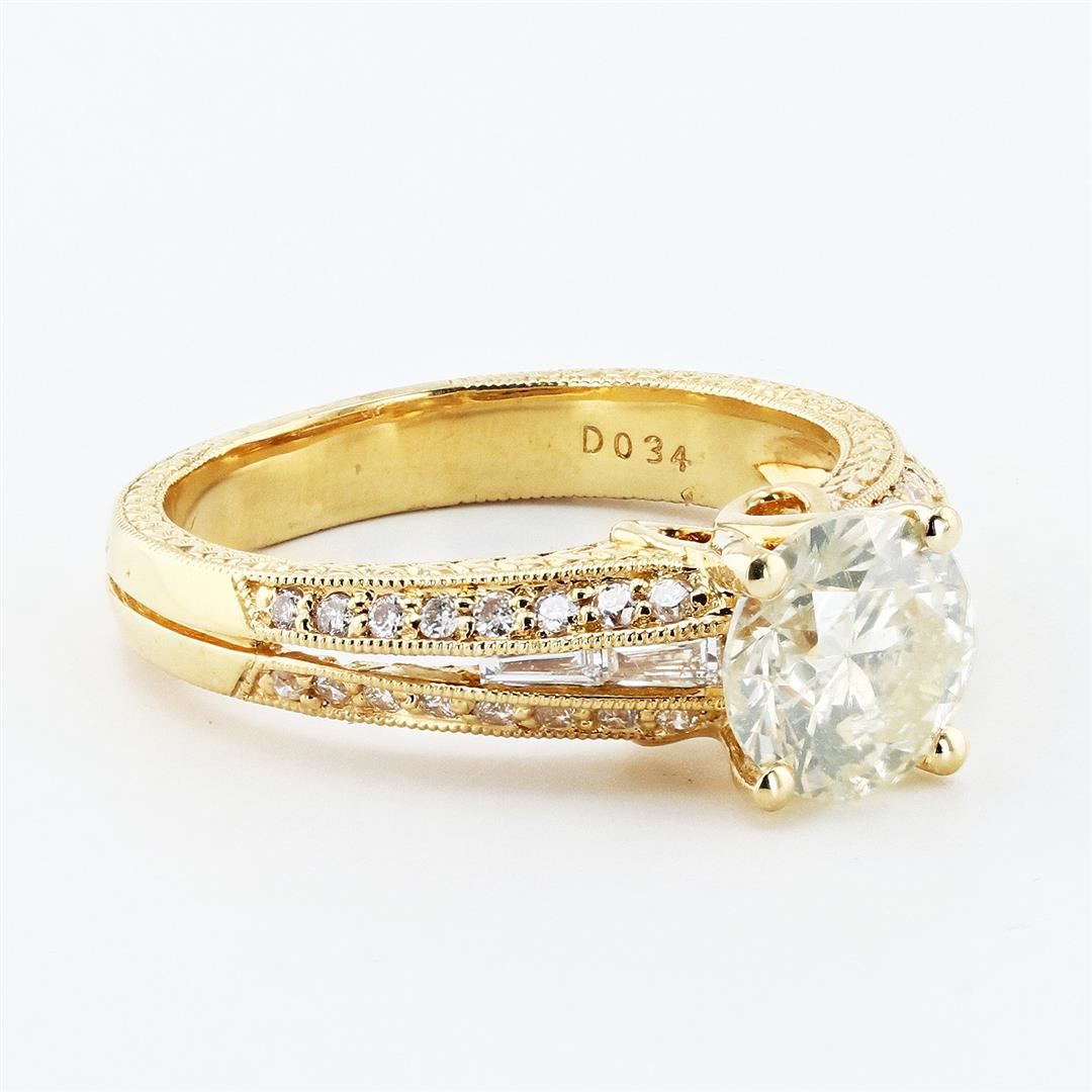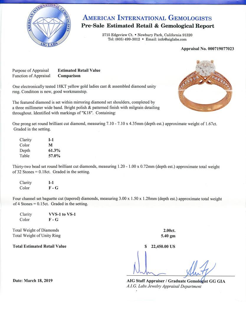 One electronically tested 18KT yellow gold ladies cast & assembled diamond unity ring. Condition is new, good workmanship. The featured diamond is set within mirroring diamond set shoulders, completed by a three millimeter wide band. Bright polish and pat