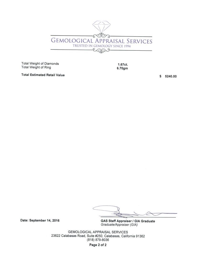 Regarding Appraised Jewelry, Watches and Loose Stones –