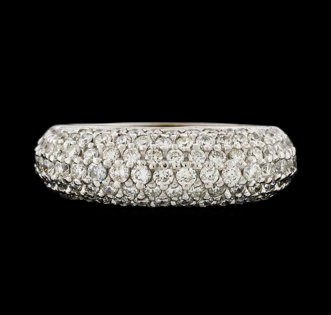 One electronically tested 14KT white gold lady's cast fashion ring with a pointed shank with a bright polish finish. The featured lady's ring has a shank measuring 3.46 millimeters wide. Identified with markings of '14K'. Condition is new, good workmanship. Containing: Nineteen prong set round brilliant cut diamonds, measuring 1.85 - 1.75 x 1.12mm (depth est.) approximate total weight of 19 Stones = 0.42ct. Graded in the setting. Clarity SI-1 to SI-2. Color: H - I Cut Good Seventy-Four prong set round brilliant cut diamonds, measuring 1.60 - 1.50 x 0.96mm (depth est.) approximate total weight of 74 Stones = 1.05ct. Graded in the setting. Clarity SI-1 to SI-2. Color: H - I Cut Good Twenty prong set round brilliant cut diamonds, measuring 1.40 - 1.35 x 0.86mm (depth est.) approximate total weight of 20 Stones = 0.20ct. Graded in the setting. Clarity SI-1 to SI-2. Color: H - I Cut Good. Total Weight of Diamonds 1.67ct.. Total Weight of Ring 5.40gm. GAS Appraised.