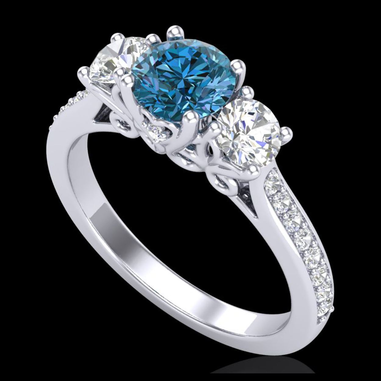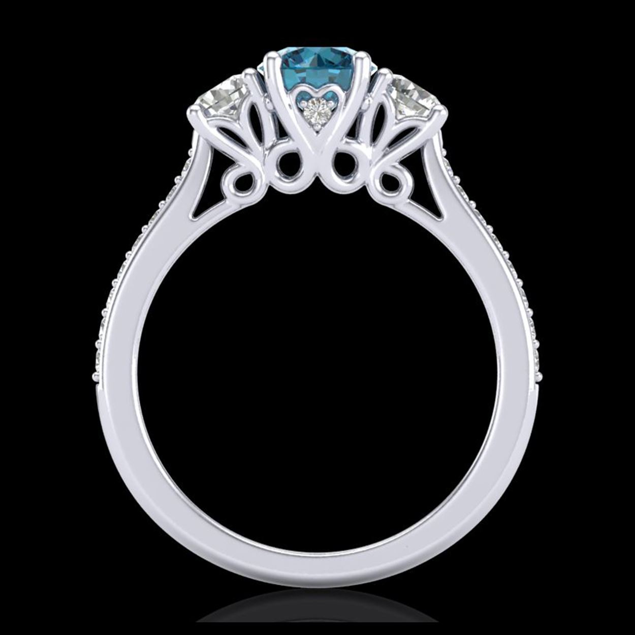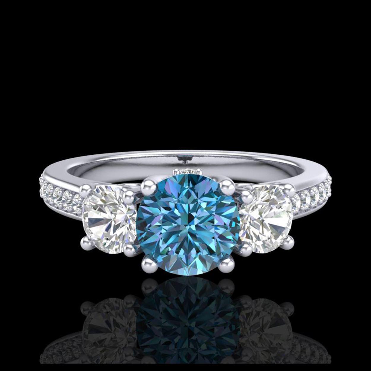 1.67 ctw Intense Blue Diamond Art Deco 3 Stone Ring 18K White Gold