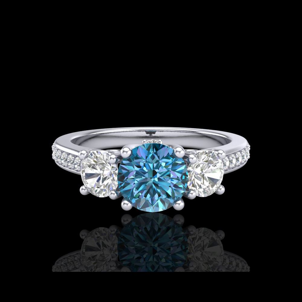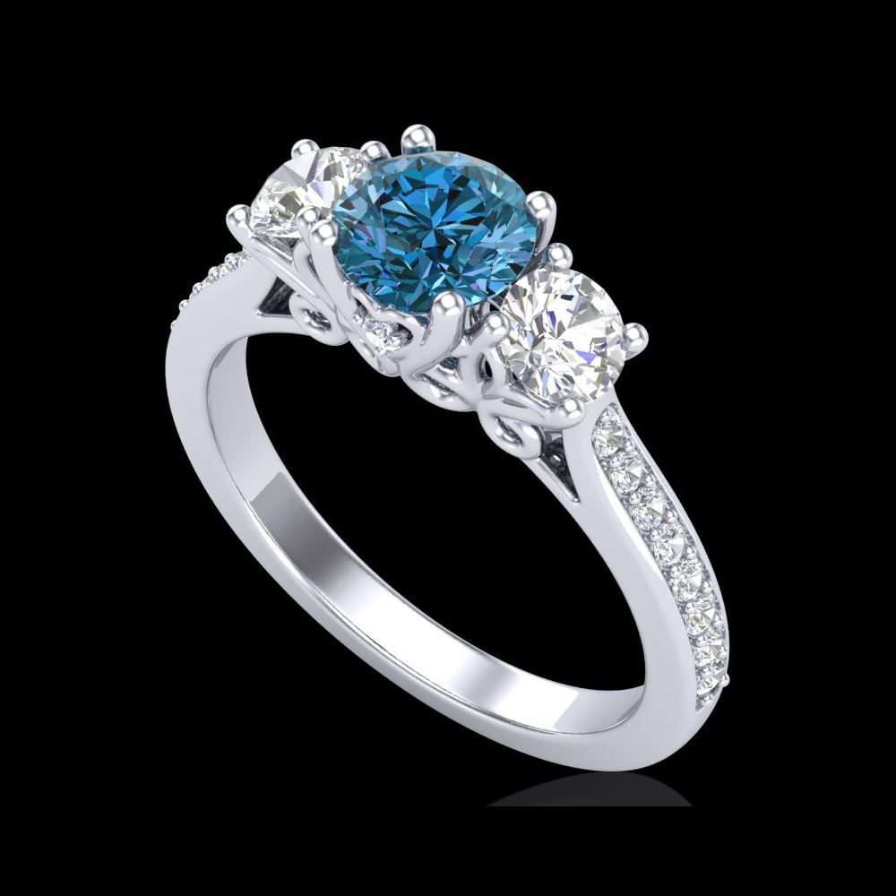 1.67 ctw Intense Blue Diamond Art Deco 3 Stone Ring 18K White Gold
