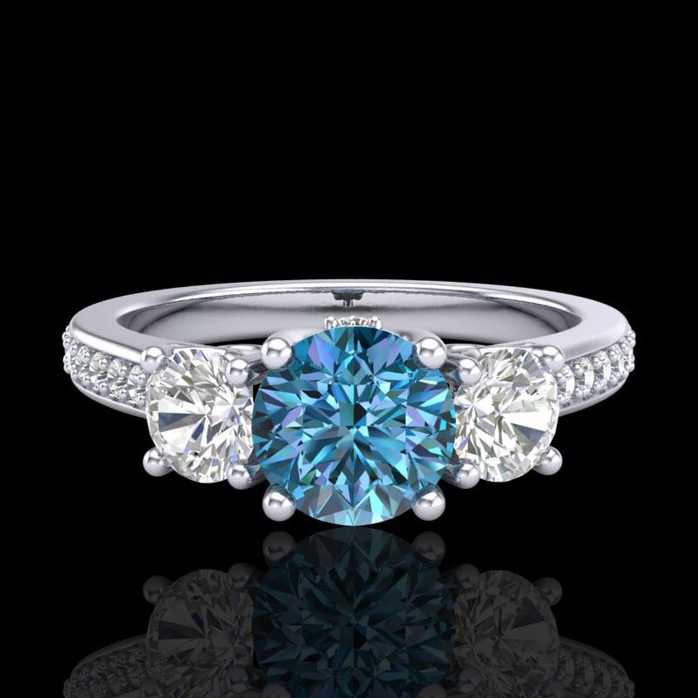 REF-200N2F - SKU: 37810 ---- 1.67 ctw Intense Blue Diamond Art Deco 3 Stone Ring 18k White Gold