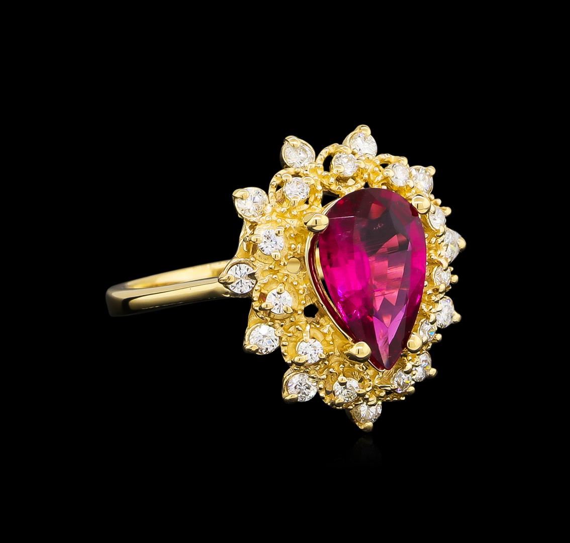 One ring featuring: 14KT yellow gold weighing 4.48 grams containing one pink topaz with a total weight of 1.67ct and side diamonds with a total weight of 0.41ct.