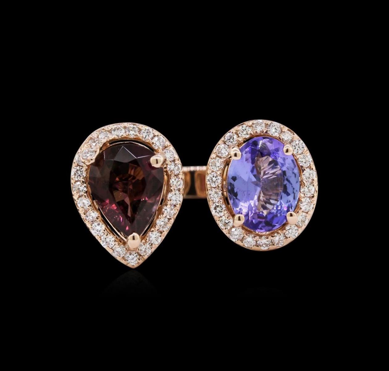 1.67 ctw Pink Tourmaline, Tanzanite and Diamond Ring - 14KT White Gold