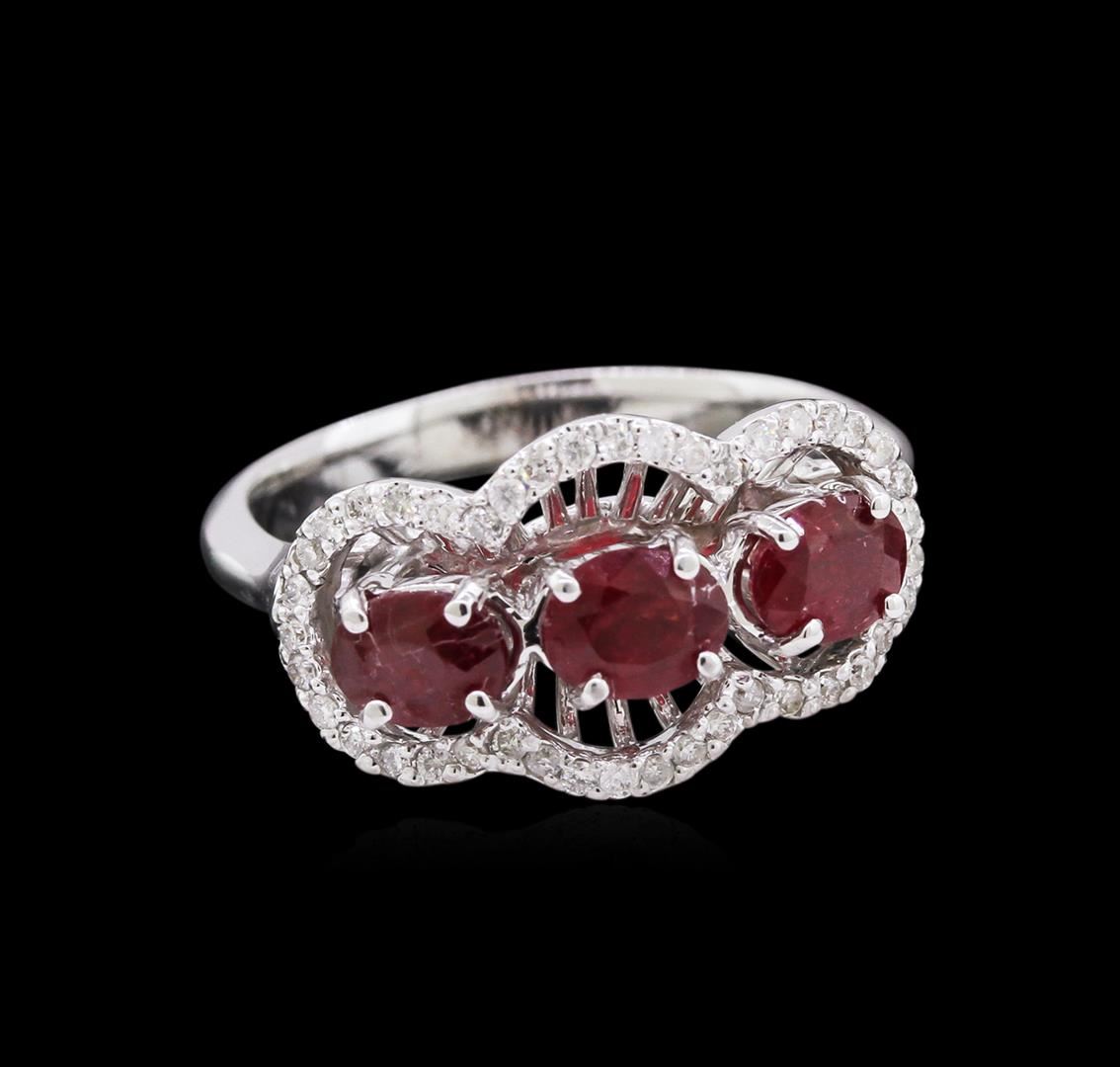 One ring featuring: 14KT white gold weighing 4.29 grams containing 3 rubies with a total weight of 1.67ct and diamonds with a total weight of 0.22ct.
