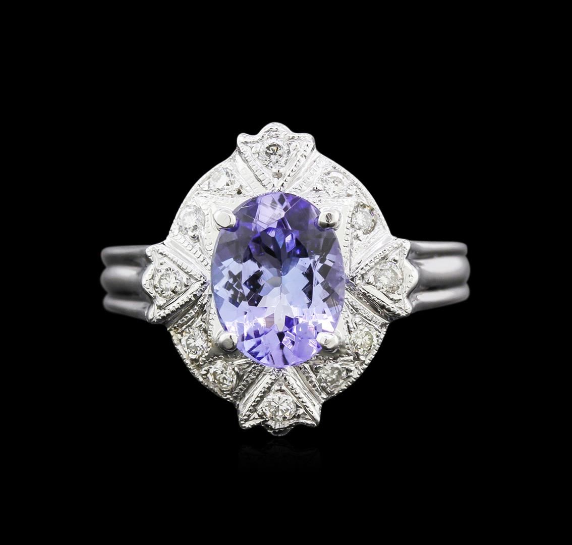 One ring featuring: 14KT white gold weighing 4.60 grams containing one tanzanite center stone with a total weight of 1.67ct and 12 diamonds with a total weight of 0.23ct.